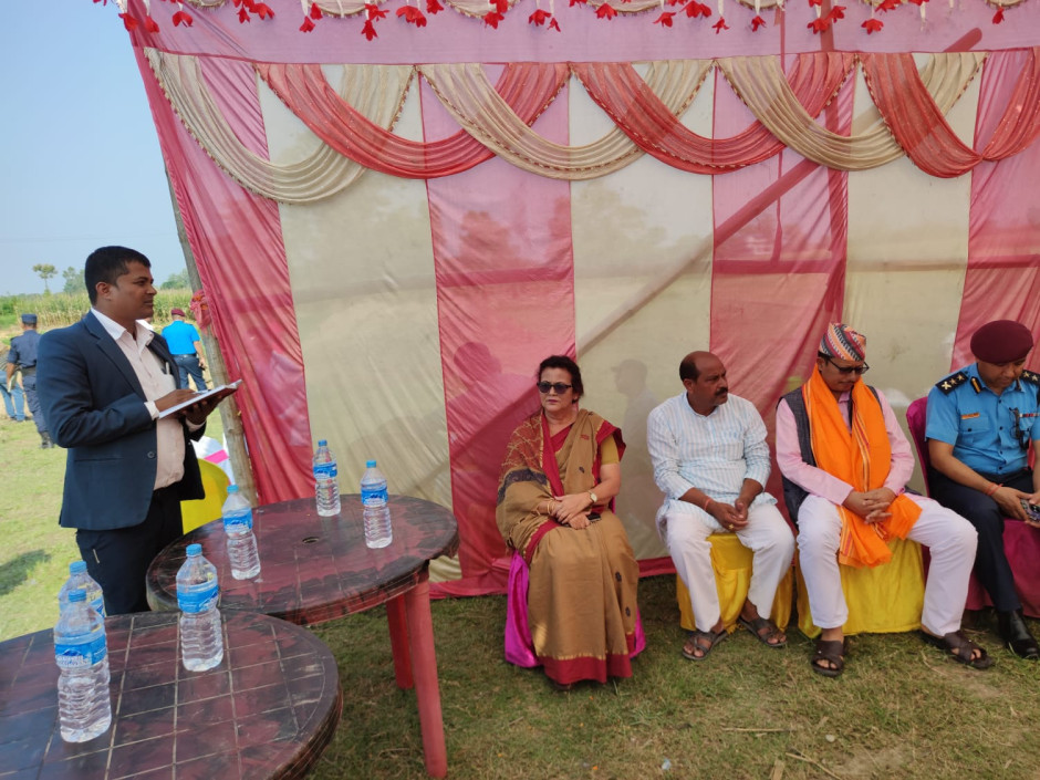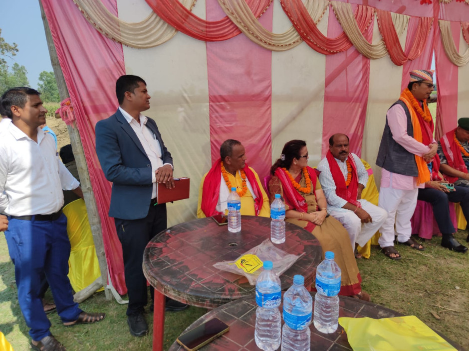 श्रीमान् प्रमुख जिल्ला अधिकारी श्री तुलसि बहादुर श्रेष्ठ ज्यु लगाययत जिल्ला सुरक्षा निकायका प्रमुख ज्युहरु बरहथवा न. पा. मेयर श्रीमती कल्पना कटवाल ज्यु, वडा अध्यक्ष , जग्गादाता, ईलाका प्रहरी बरहथवा प्रमुख सश्स्त्र प्रहरी बल बेस क्याम्प सु. चु. प्रमुख तथा यस कार्यलयका प्रमुख श्री राजेश राय तथा कार्यरत कर्मचारीहरु रवि साह, राहुलजी मण्डल, भेष बहादुर थापाक्षेत्री, श्याम सुन्दर साह, विष्णु नारायण प्रसाद साह, प्रमोद पंडित सहितको सहभागितामा मिति २०८२-०१-२४ गते बुधबार नयाँ प्रशासकीय भवनकाे लागि शिलान्यास कार्य सम्पन्न ।