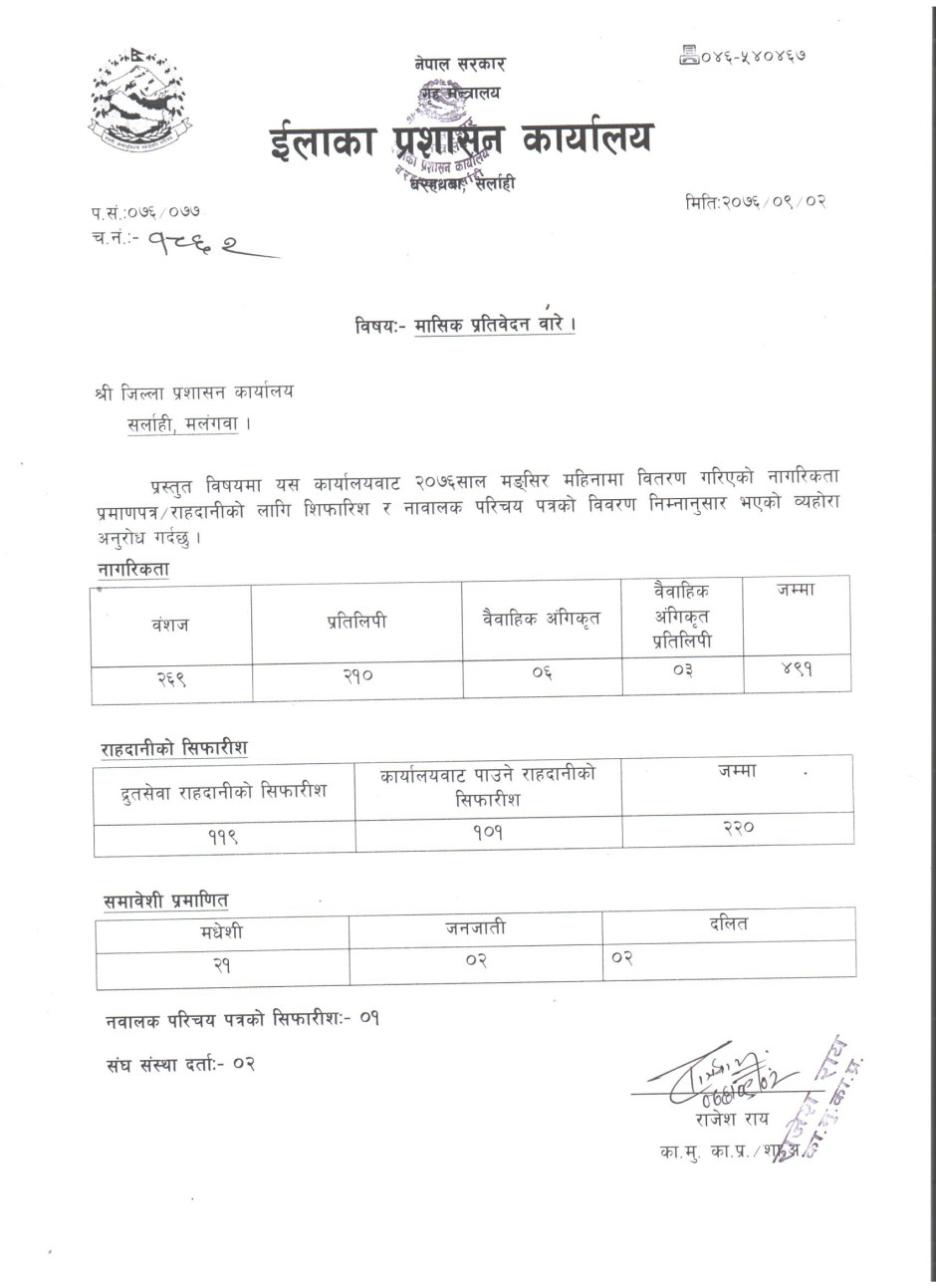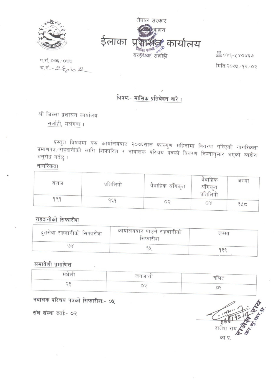 २०७६ साल माघ महिनाकाे मासिक प्रतिवेदन
